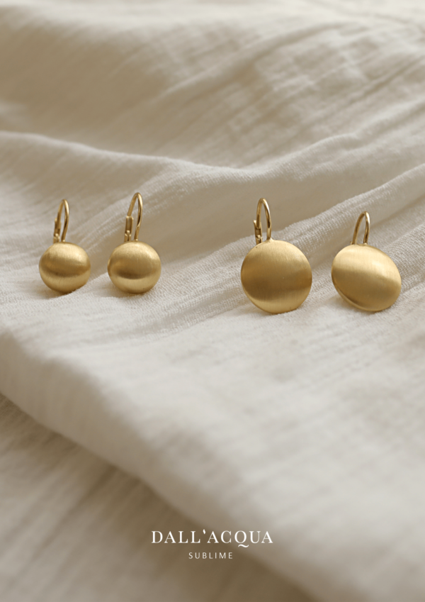 Kolczyki z kolekcji SUBLIME wykonane ze srebra próby 925 pozłacane metodą elektroforetyczną 23-karatowym złotem, dzięki czemu biżuteria staje się bardziej odporna na zarysowania i przedłuża trwałość produktu. Średnica około 1,2cm. rodzaj zapięcia na biglu, forma wykończenia kolczyków satynowane