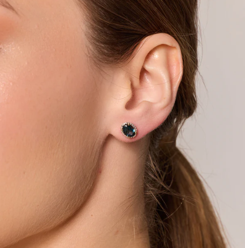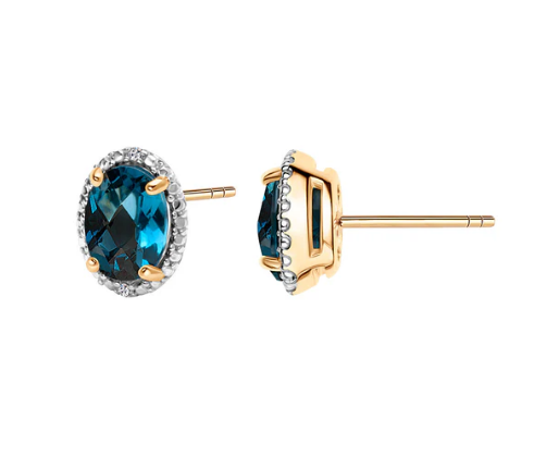 Model ozdobiono 2 topazami London Blue o masie 1,85ct oraz 4 diamentami o łącznej masie 0,013ct (J/SI).