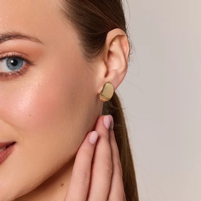 Kolczyki na biglu wykonane ze złota. Model gładki, bez zdobień. Biżuteria idealnie sprawdzi się do codziennej stylizacji jak i na wyjścia.