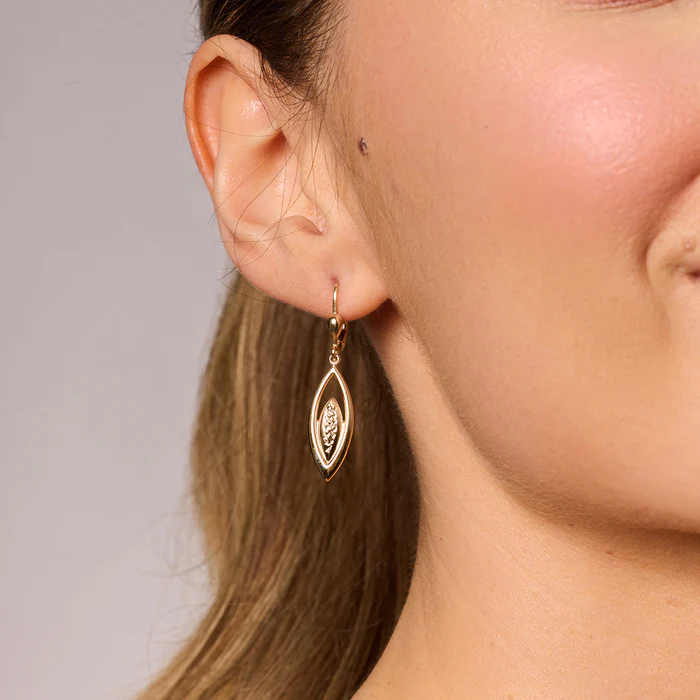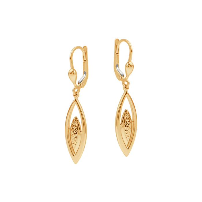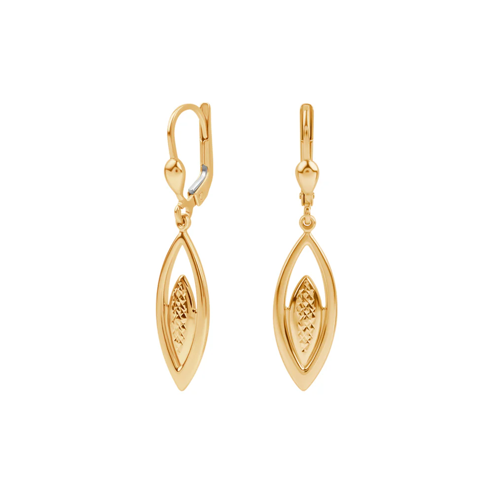 Kolczyki z żółtego złota próby 333 o wydłużonym, ażurowym kształcie i zapięciu typu bigiel. Klasyczny styl i subtelne zdobienie sprawiają, że doskonale dopełniają eleganckie stylizacje.
