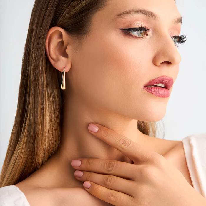 Eleganckie kolczyki wiszące wykonane z żółtego złota próby 333. Model o podłużnej, zaokrąglonej formie. Kolczyki będą klasycznym dodatkiem do eleganckich stylizacji na co dzień, a także na wyjątkowe okazje.