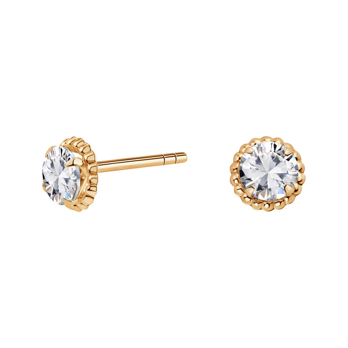 Kolczyki wykonane z żółtego złota próby 333, ozdobione bezbarwnymi cyrkoniami osadzonymi w centralnej części. Kamienie oprawione w dekoracyjną, ażurową podstawę podkreślającą ich okrągły kształt. Subtelna forma i klasyczna konstrukcja sprawiają, że model stanowi elegancki dodatek na co dzień oraz na wieczór.