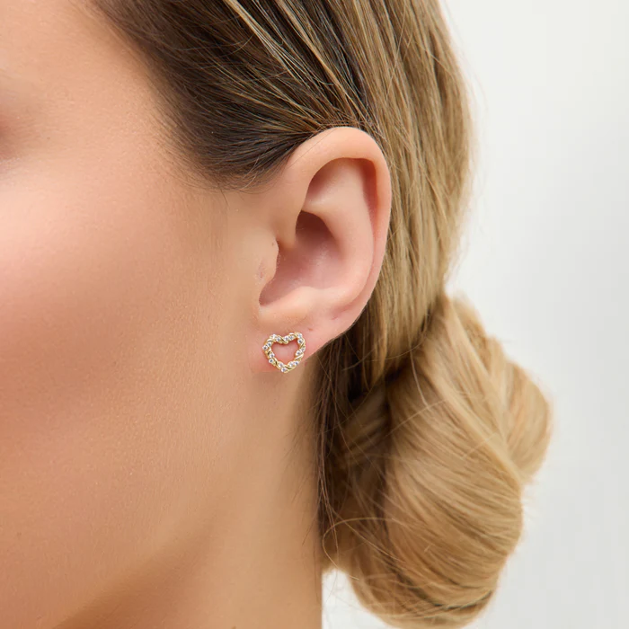 Delikatne kolczyki w kształcie serc wykonane ze złota próby 333, zdobione bezbarwnymi cyrkoniami. Ażurowa forma i splot przypominający łańcuszek nadają im romantyczny i nowoczesny charakter. Idealne na co dzień lub jako subtelny dodatek do eleganckiej stylizacji.