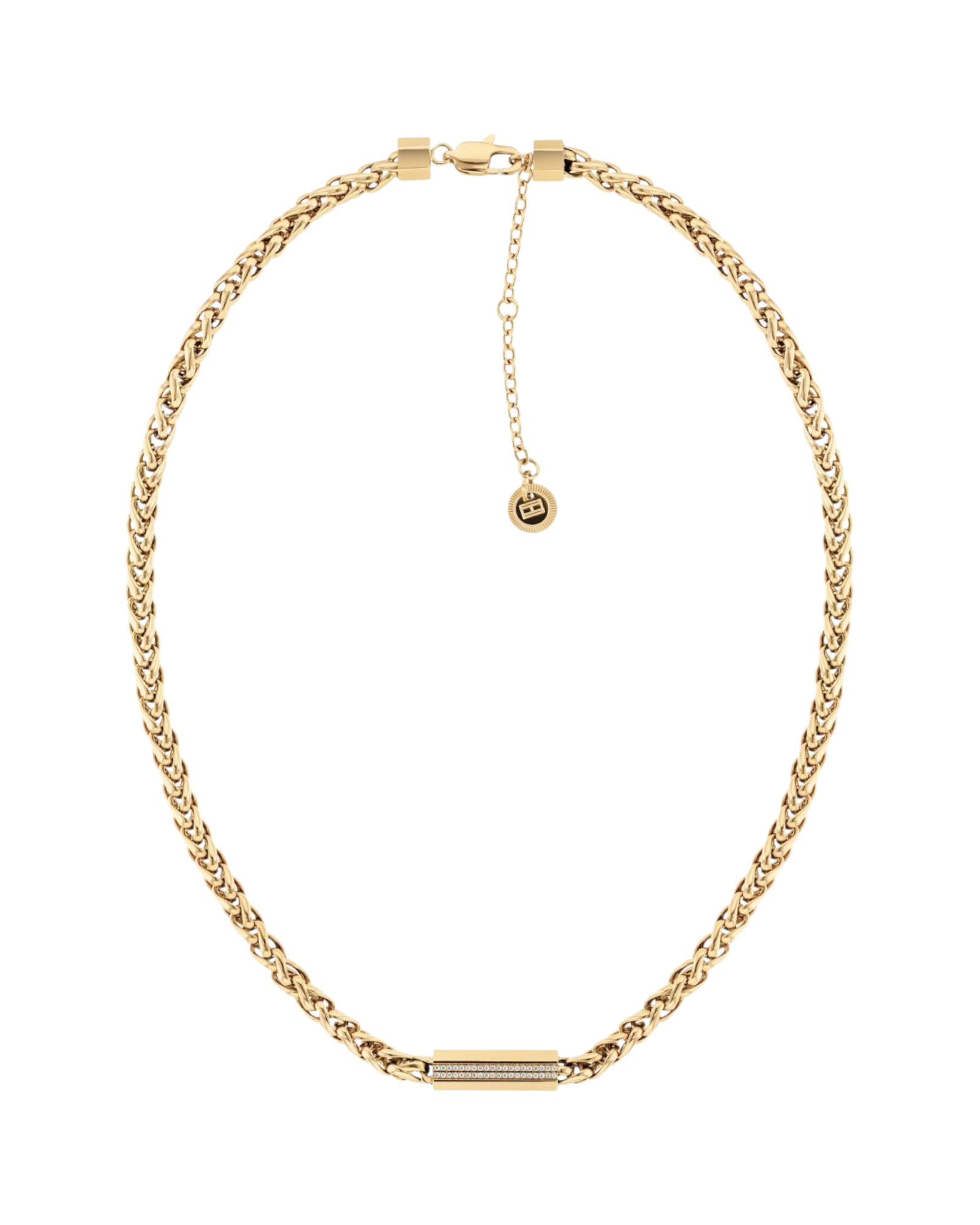 Elegancki naszyjnik damski marki Tommy Hilfiger, model 2780873, to doskonały wybór dla kobiet ceniących ponadczasowy styl i wysoką jakość. Wykonany z wysokiej jakości stali chirurgicznej w kolorze złotym, naszyjnik charakteryzuje się subtelnym, ale wyrazistym designem, który doskonale komponuje się zarówno z codziennymi, jak i wieczorowymi stylizacjami.