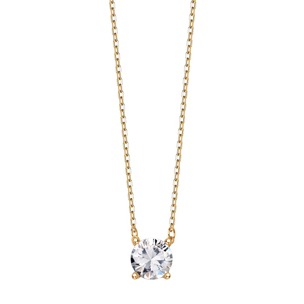 Naszyjnik wykonany z żółtego złota próby 333, ozdobiony bezbarwną cyrkonią w klasycznej oprawie. Subtelna forma o eleganckim i minimalistycznym charakterze sprawdzi się zarówno na co dzień, jak i na wyjątkowe okazje.