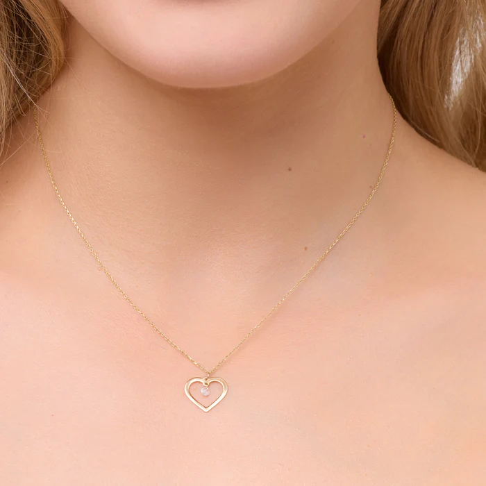 Naszyjnik złoty próby 333. Model z zawieszką w kształcie serca. W środku zawieszki została umieszczona lśniąca cyrkonia. Biżuteria dobrze sprawdzi się jako prezent dla ukochanej osoby.