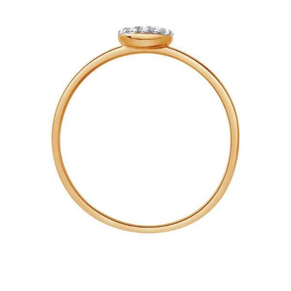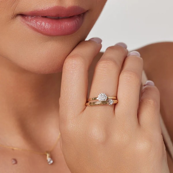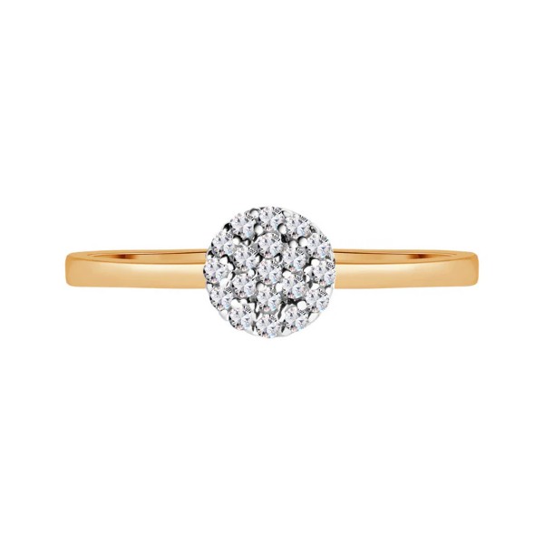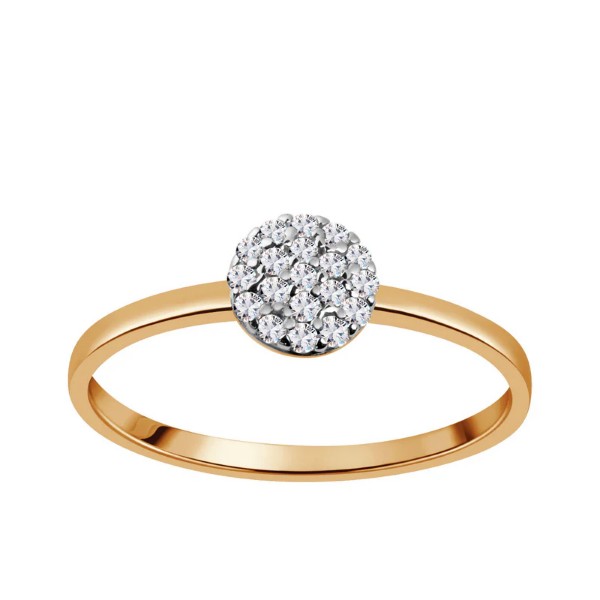 Pierścionek złoty w próbie 585. Model posiada drobne, lśniące cyrkonie ułożone w okrągły kształt. Biżuteria idealnie uzupełni codzienną jak i wieczorową stylizację.