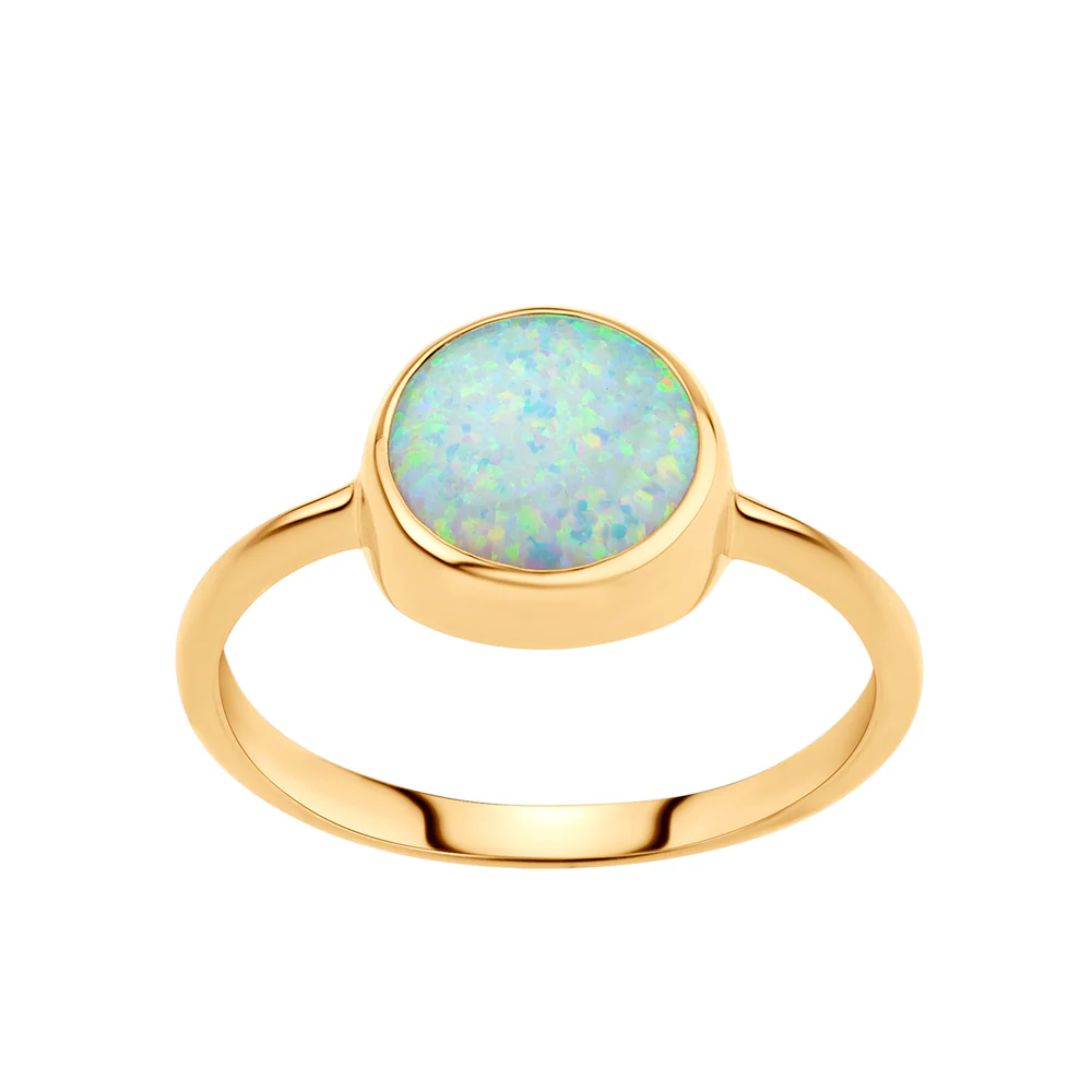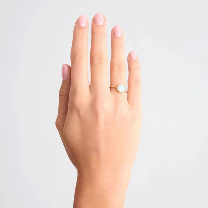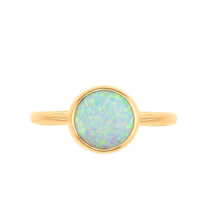 Pierścionek wykonany z żółtego złota próby 333, wyróżnia się klasyczną formą i wyrazistym kamieniem – opalitem. Kamień oprawiono w gładką ramę, która podkreśla elegancję i minimalistyczny charakter biżuterii. To model o harmonijnym wyglądzie, idealny dla miłośników ponadczasowego stylu.