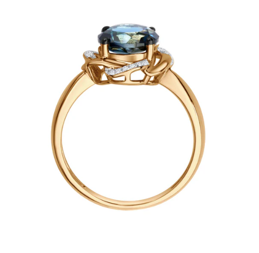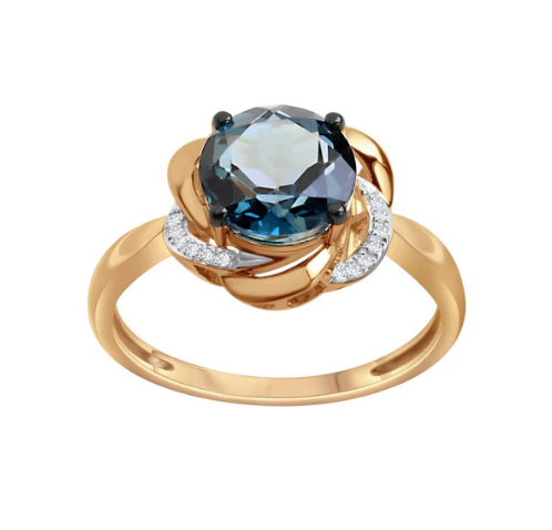 Model ozdobiono Topazem London Blue o masie 2,30 ct oraz 18 diamentami, o łącznej masie 0,035 ct jakości H/I.
