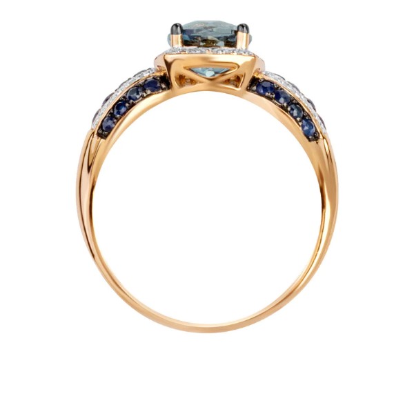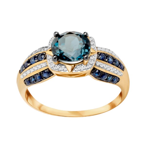 Model ozdobiono Topazem London Blue o masie 1,60 ct, 24 szafirami, o łącznej masie 0,44 ct oraz 52 diamentami, o łącznej masie 0,09 ct.