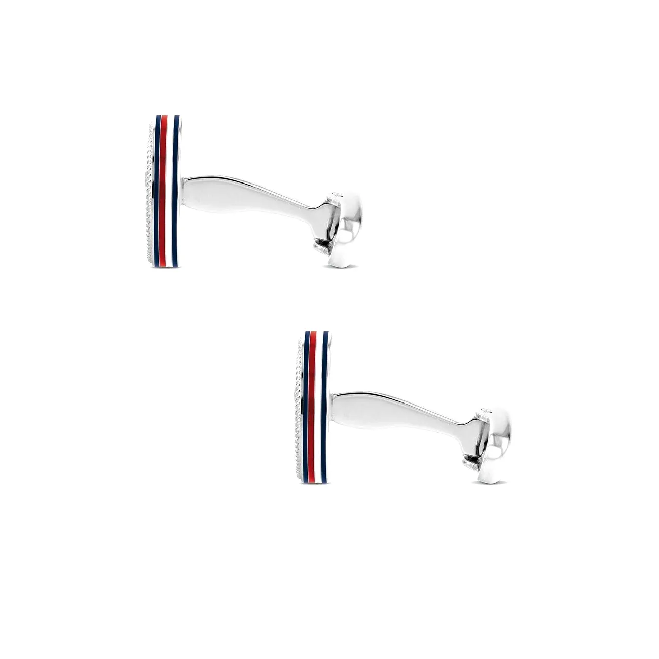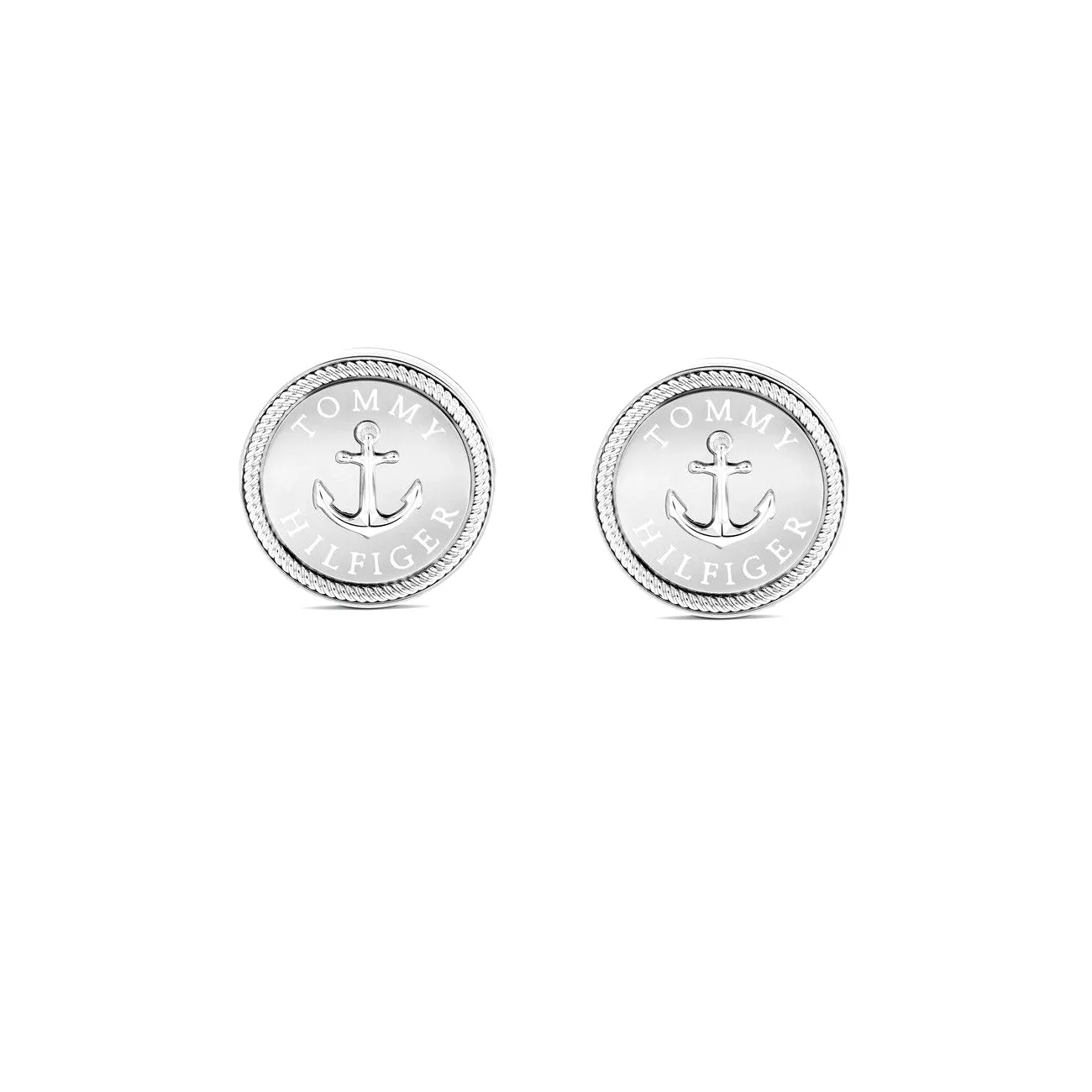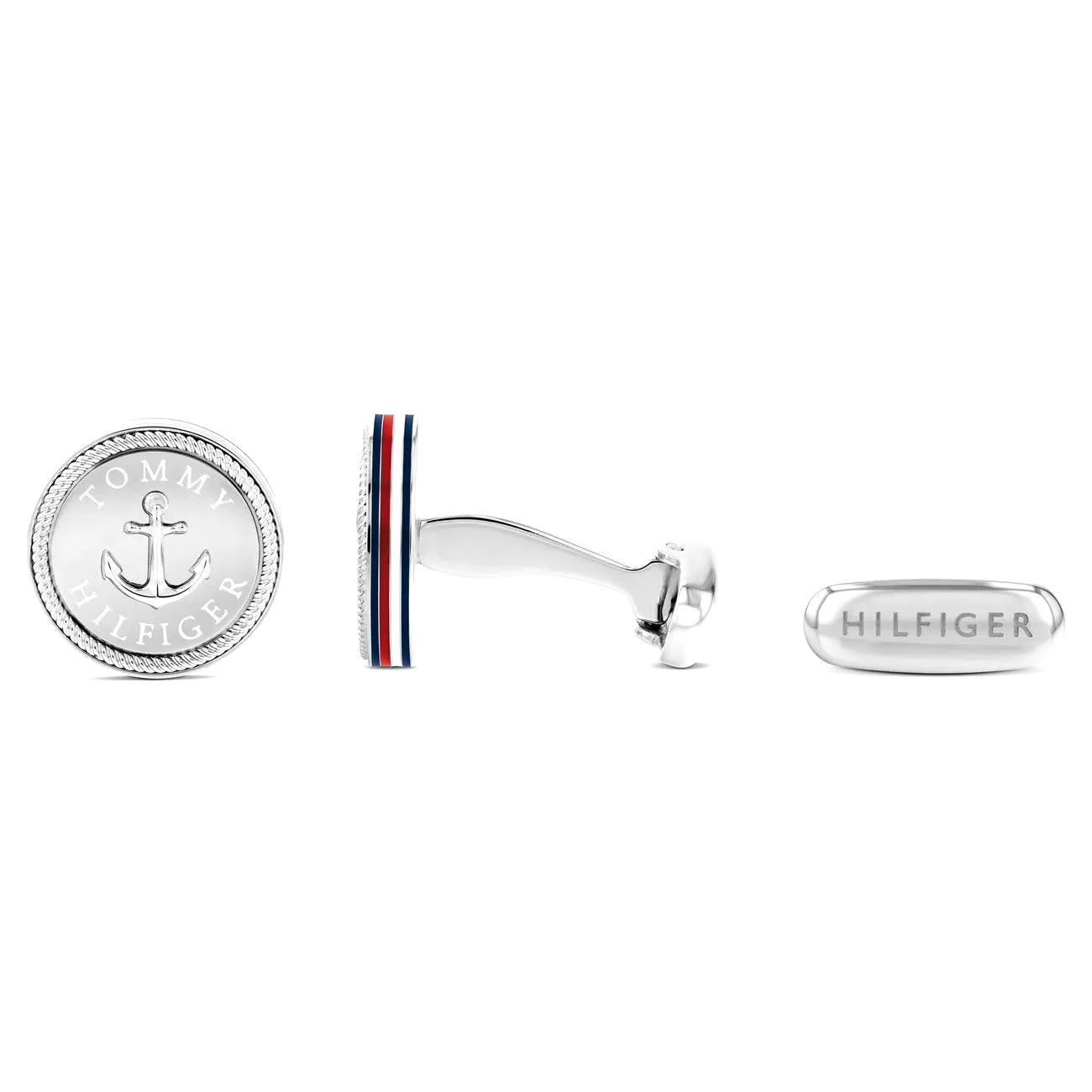 Spinki do mankietów Tommy Hilfiger 2790701 wykonane ze stali szlachetnej łączą elegancki, srebrny połysk z marynistycznym motywem kotwicy. Stylowy detal z kolorami marki podkreśla prestiż i klasę formalnej stylizacji.