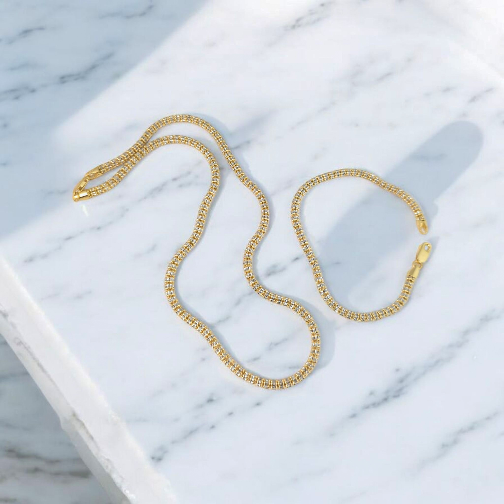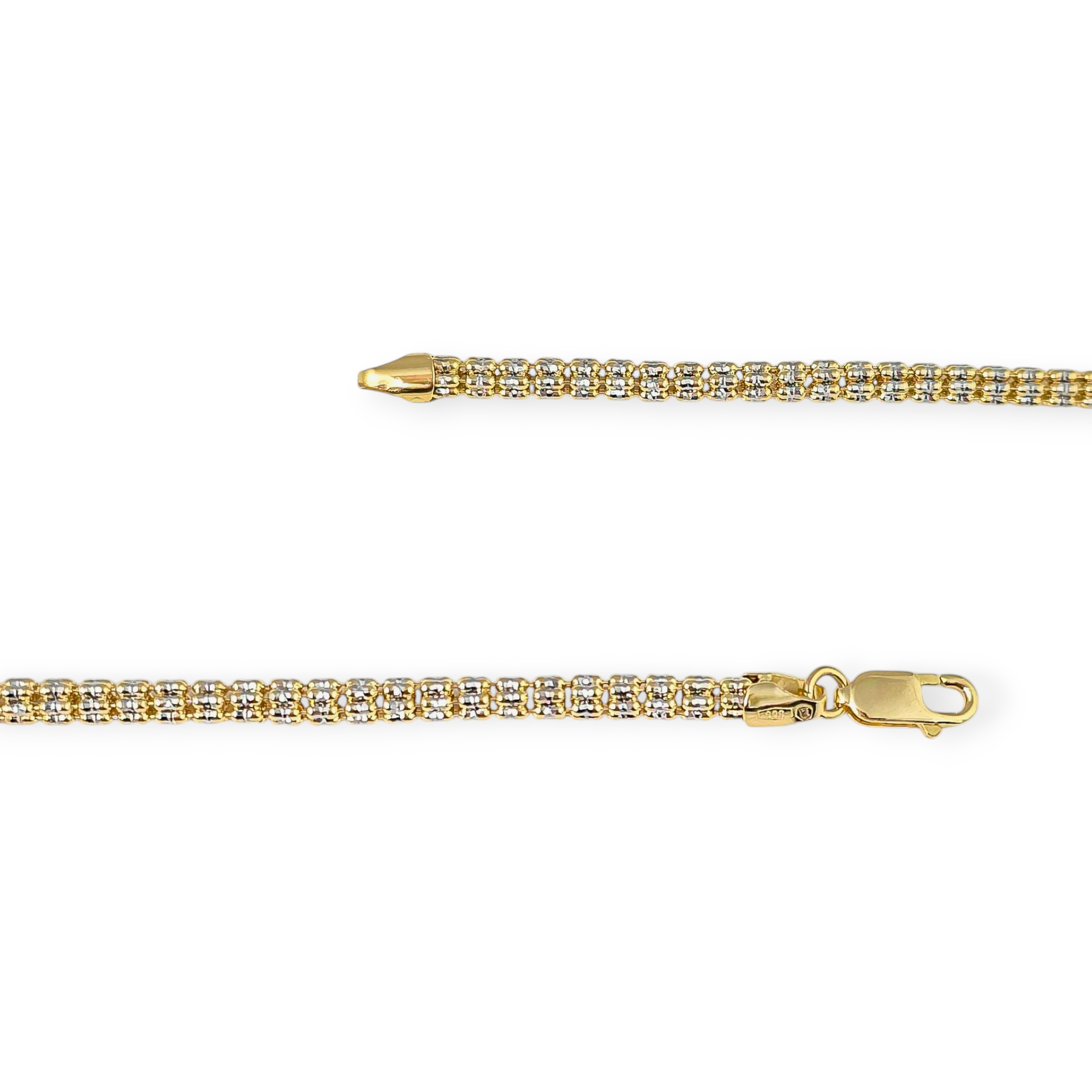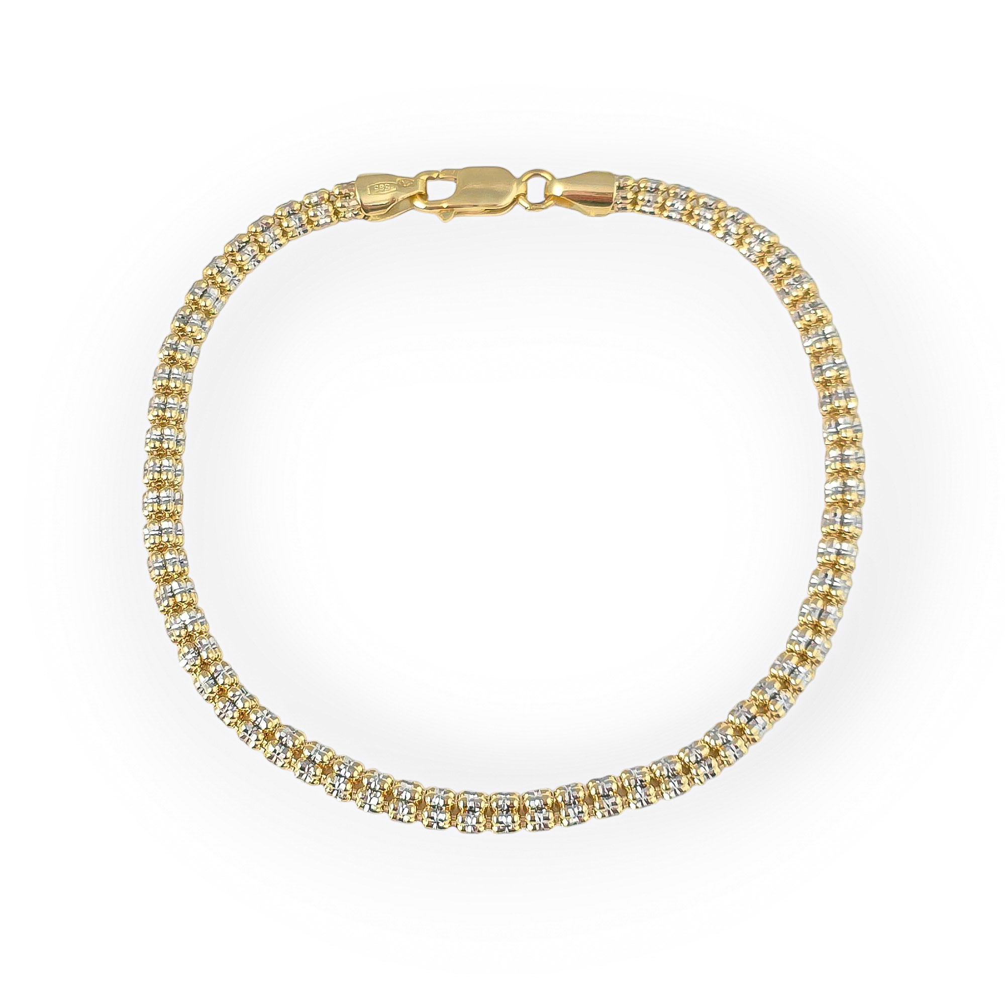 Połączenie białego z żółtym złotem sprawia, że bransoletka widocznie się mieni.