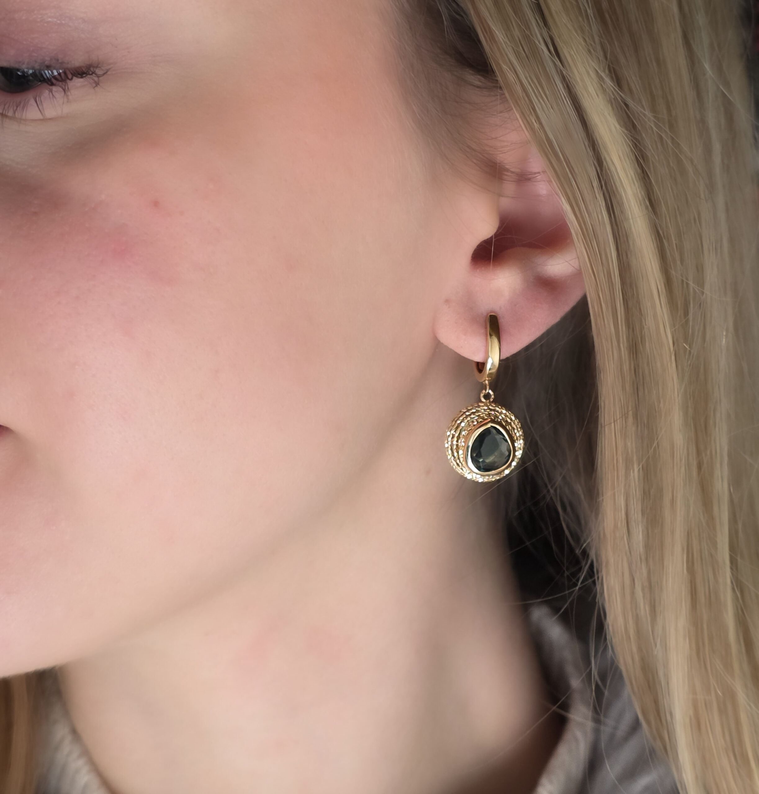Biżuteria od znanej i polecanej marki. Kolczyki wykonane ze złota próby 0,585. Osadzony kwarc w złocie doda pięknej głębi do każdej kreacji.
